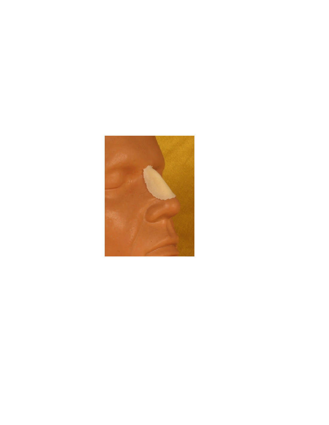 Les prothèses en mousse de latex ( Rubber Wear) fines et souples peut être collée avec la plupart des adhésifs courants, tels que Spirit Gum ou Pros Aide et peut être retirée avec n'importe quel dissolvant d'adhésif à base d'huile.