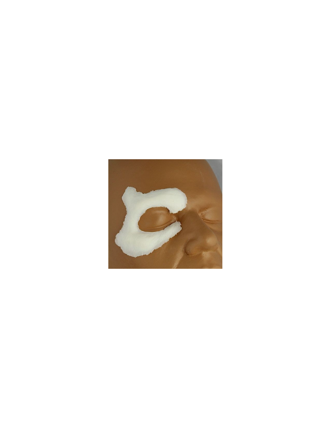 Les prothèses en mousse de latex ( Rubber Wear) fines et souples peut être collée avec la plupart des adhésifs courants, tels que Spirit Gum ou Pros Aide et peut être retirée avec n'importe quel dissolvant d'adhésif à base d'huile.